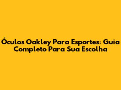 Óculos Oakley Para Esportes: Guia Completo Para Sua Escolha