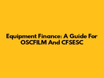 Equipment Finance: A Guide For OSCFILM And CFSESC