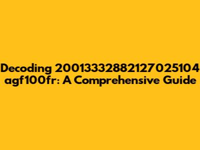 Now, let's focus on the specific identifier 20013332882127025104 agf100fr. Given its length and complexity, it's likely a serial number, a complex part number, or some other unique identifier. Here's a structured approach to try and decode it: