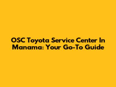 OSC Toyota Service Center In Manama: Your Go-To Guide