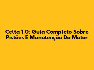Celta 1.0: Guia Completo Sobre Pistões E Manutenção Do Motor