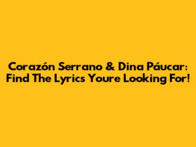 Corazón Serrano & Dina Páucar: Find The Lyrics You're Looking For!
