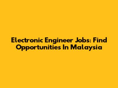 Electronic Engineer Jobs: Find Opportunities In Malaysia